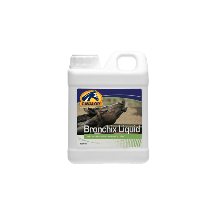 Cavalor Bronchix Liquid podržava gornji respiratorni trakt, posebno u slučaju kašlja zbog raznih iritacija poput prašine, . Ovaj preparat predstavlja najbrže rešenje za prehlade i “stabilni kašalj” i zagušenja disajnih puteva. Pruža hranljivu podršku za otvaranje disajnih puteva pre intezivnog napora (čisti disajne puteve). Kašalj kod konja je često privremenog karaktera, ali ipak može da nervira i može biti problematičan za konja. Kašalj je prirodni reflex, ali sa ovim preparatom, može biti manje neugodan, i iritanti koji ga izazivaju će brže biti uklonjeni.
